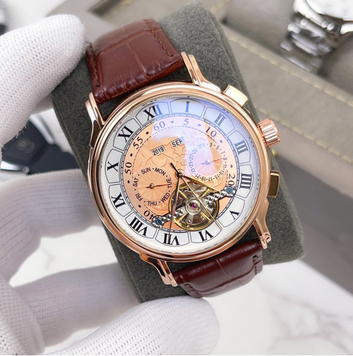 A refined timepiece built for men who value quiet luxury balanced in size, rich in detail, and designed to complement formal evenings, business settings, and every moment that calls for polished presence.