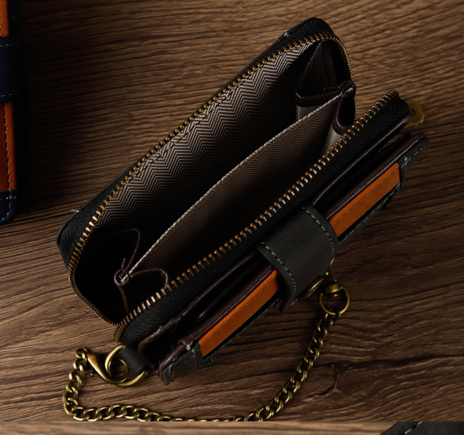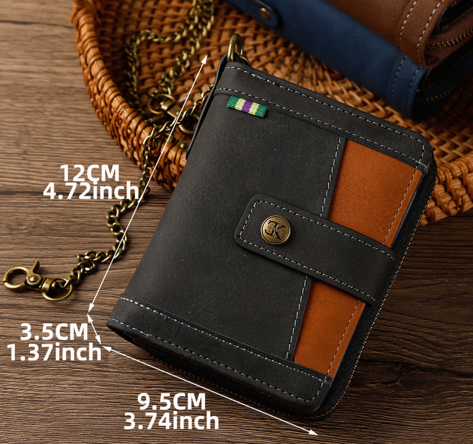 - Chain buckle keeps valuables protected