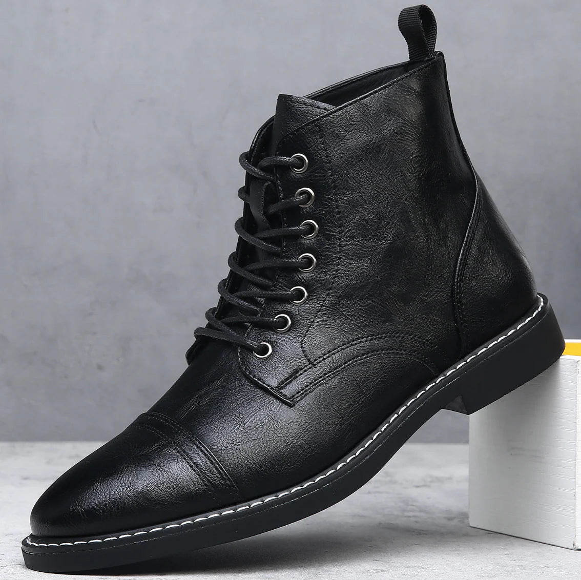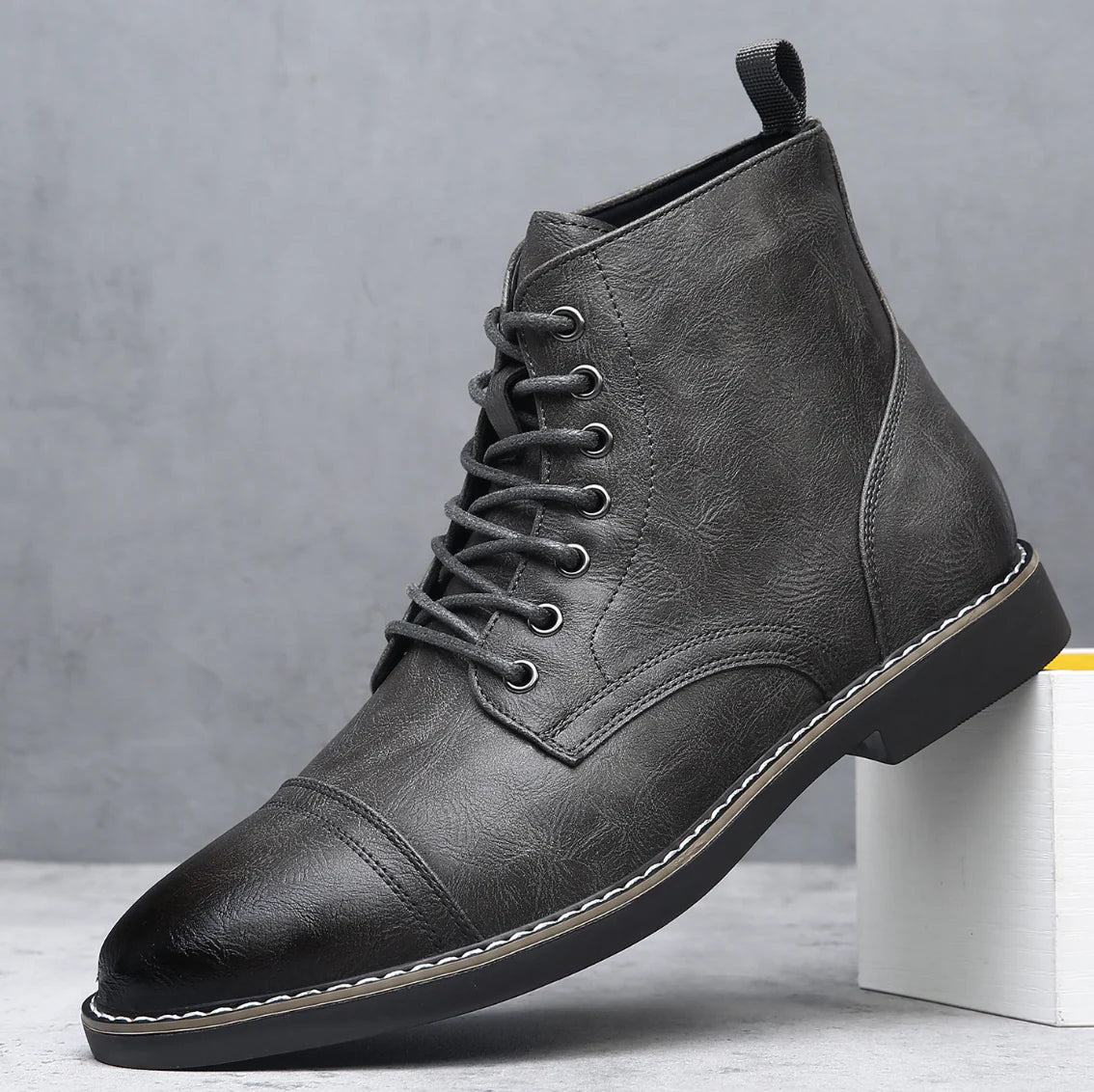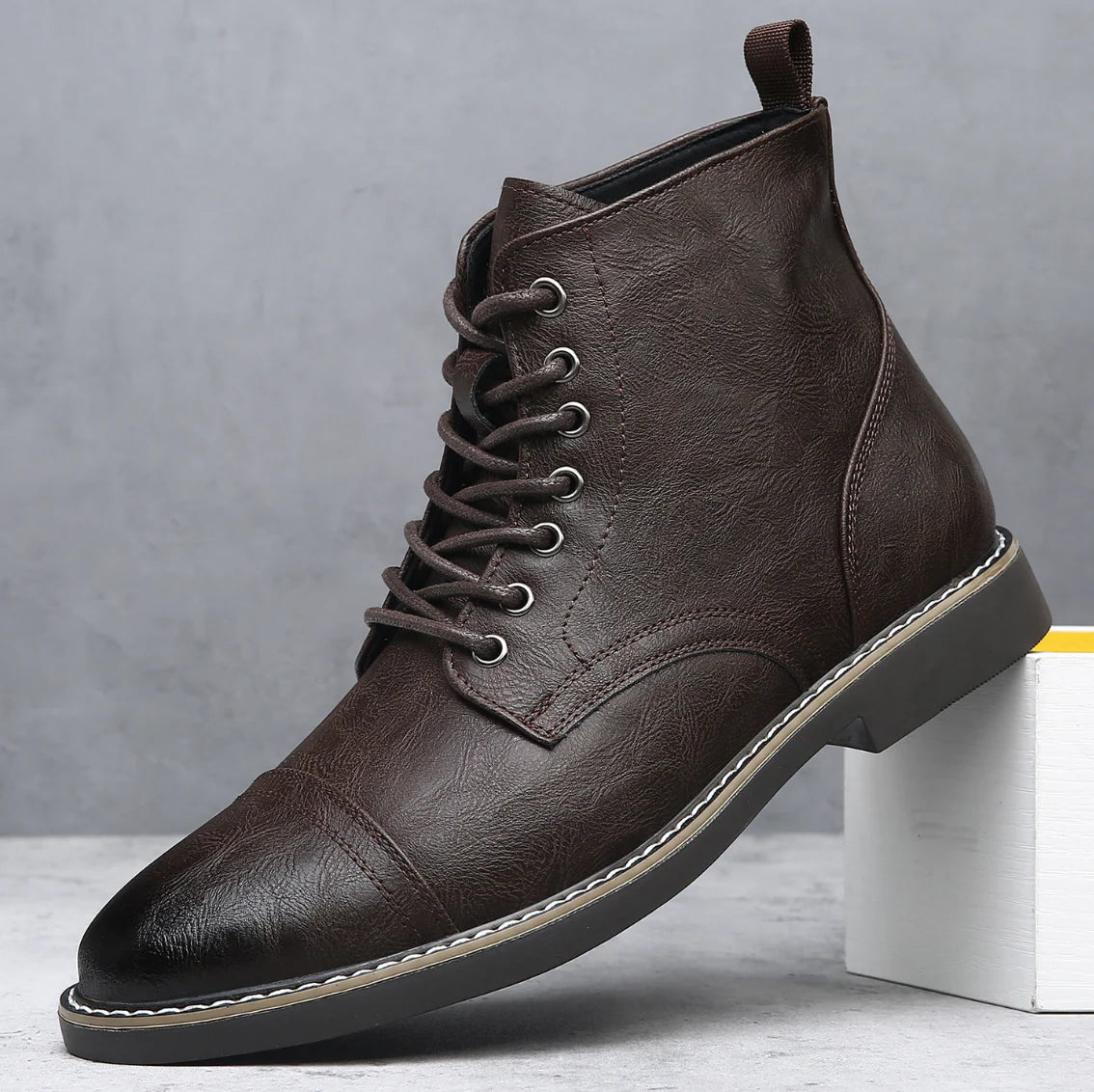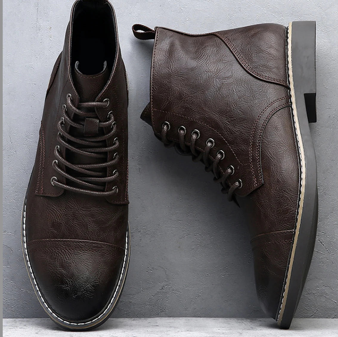 Hand-finished distressed leather with a burnished cap-toe, built for comfort now and long-term durability for workdays, weekends, or winter walks.